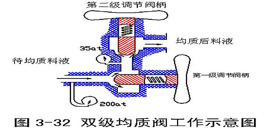高壓泵多采用三柱塞式往復泵,由共用一根軸的三個作用泵組成,三個單作用泵的曲柄互相錯開120度,其吸液泵和排液泵也是三個泵共用。這樣,在曲軸旋轉一周的周期里,各泵的吸液或排液依次相差1/3周期,大大提高排液泵流量的均勻性。三作用泵的流量各為單作用泵的三倍。均質閥安裝在高壓泵的排出路上,由閥座、閥桿和沖擊環組成,G外多采用鎢鈷鉻合金(用于牛奶均質)或硬質合金(腐蝕性強的液料)等制成,而G內多采用4Cr13。目前多數高壓均質機均采用二級均質閥,以獲得更均勻更細小的乳化粒子。以下即為一級、二級均質閥的結構圖及雙擊均質閥工作示意圖。