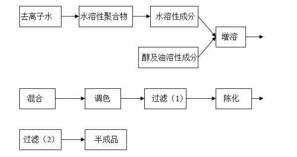 E、如配方有色素,需加入色素進行調色,然后過濾,可經過陳化到一定時間再過濾。